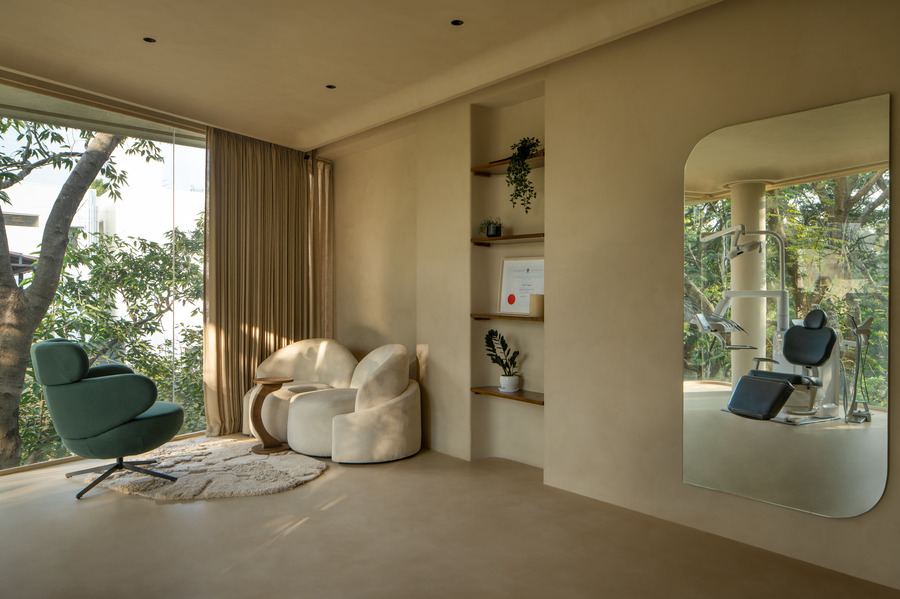 Transforming a small, skewed site into a luxurious, open space wasn’t easy, and we hadn’t imagined it could turn into something so beautiful. The way the outdoors seamlessly blends with the indoors brings out the true charm of our clinic. The lush greenery surrounding the space, combined with the thoughtfully designed landscape on each floor, makes it an absolute delight to experience.