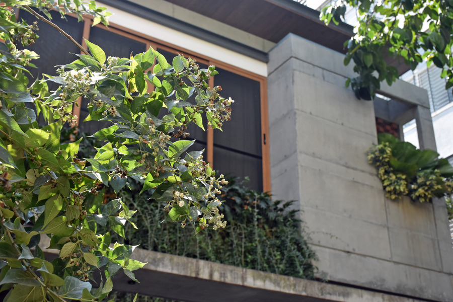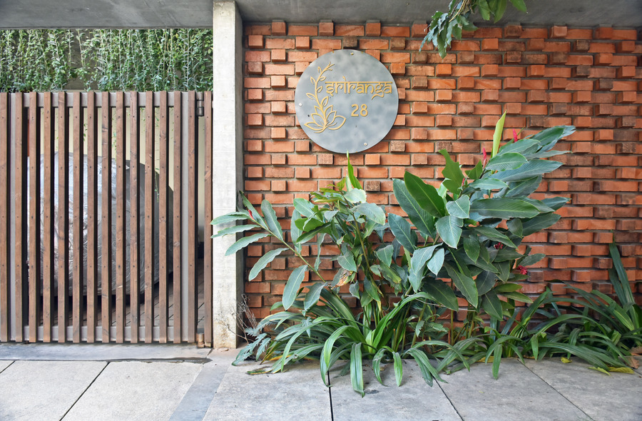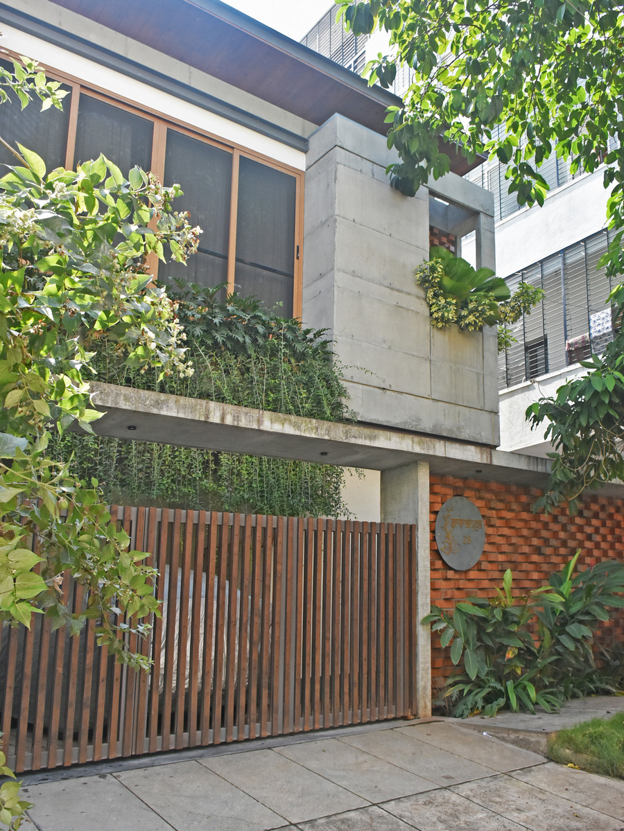 The façade has been detailed with exposed concrete walls which was brutal, punctuated with terracotta jalis inside metal frame. The series of planters dispersed across the façade bringing in a right visual balance.